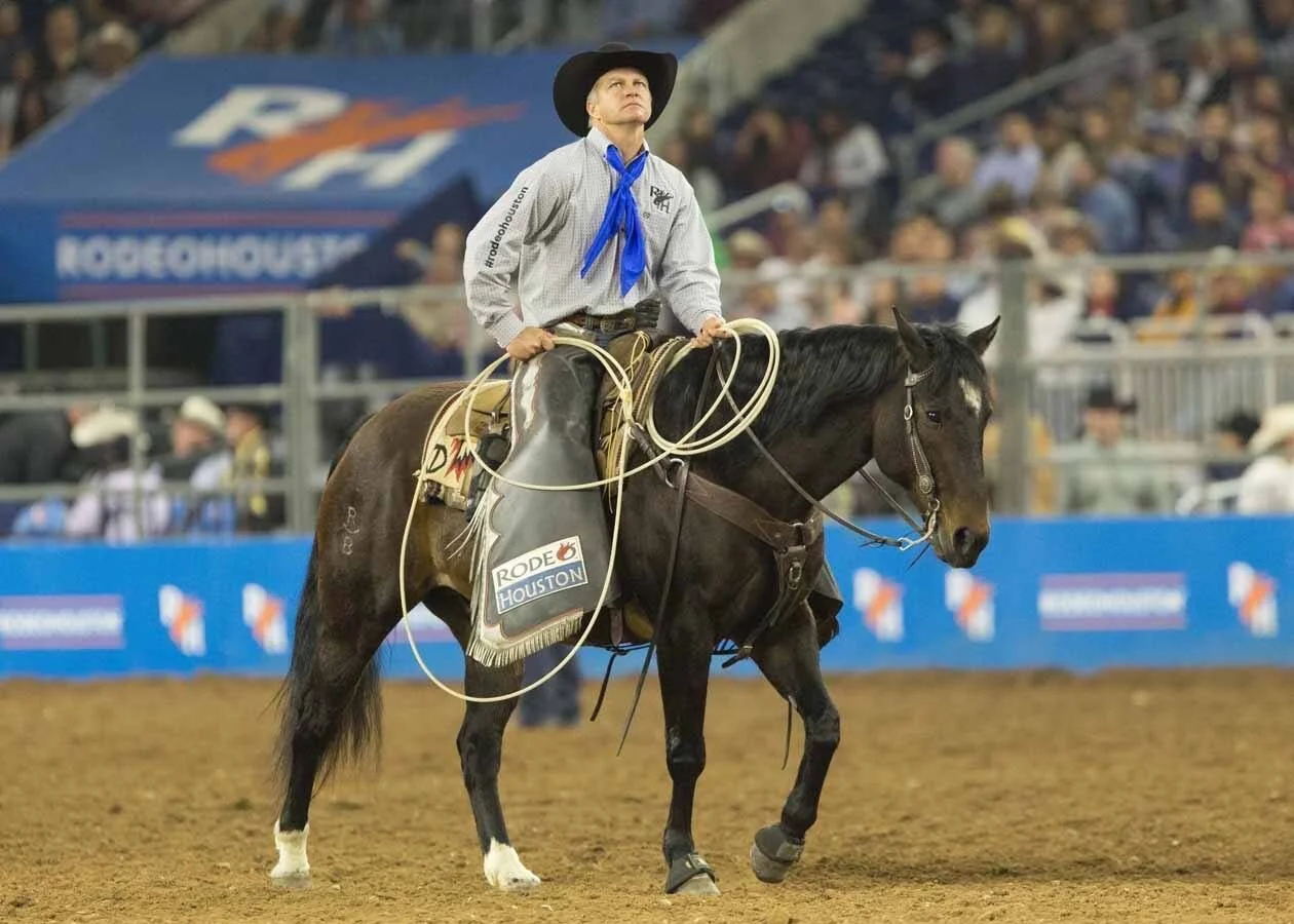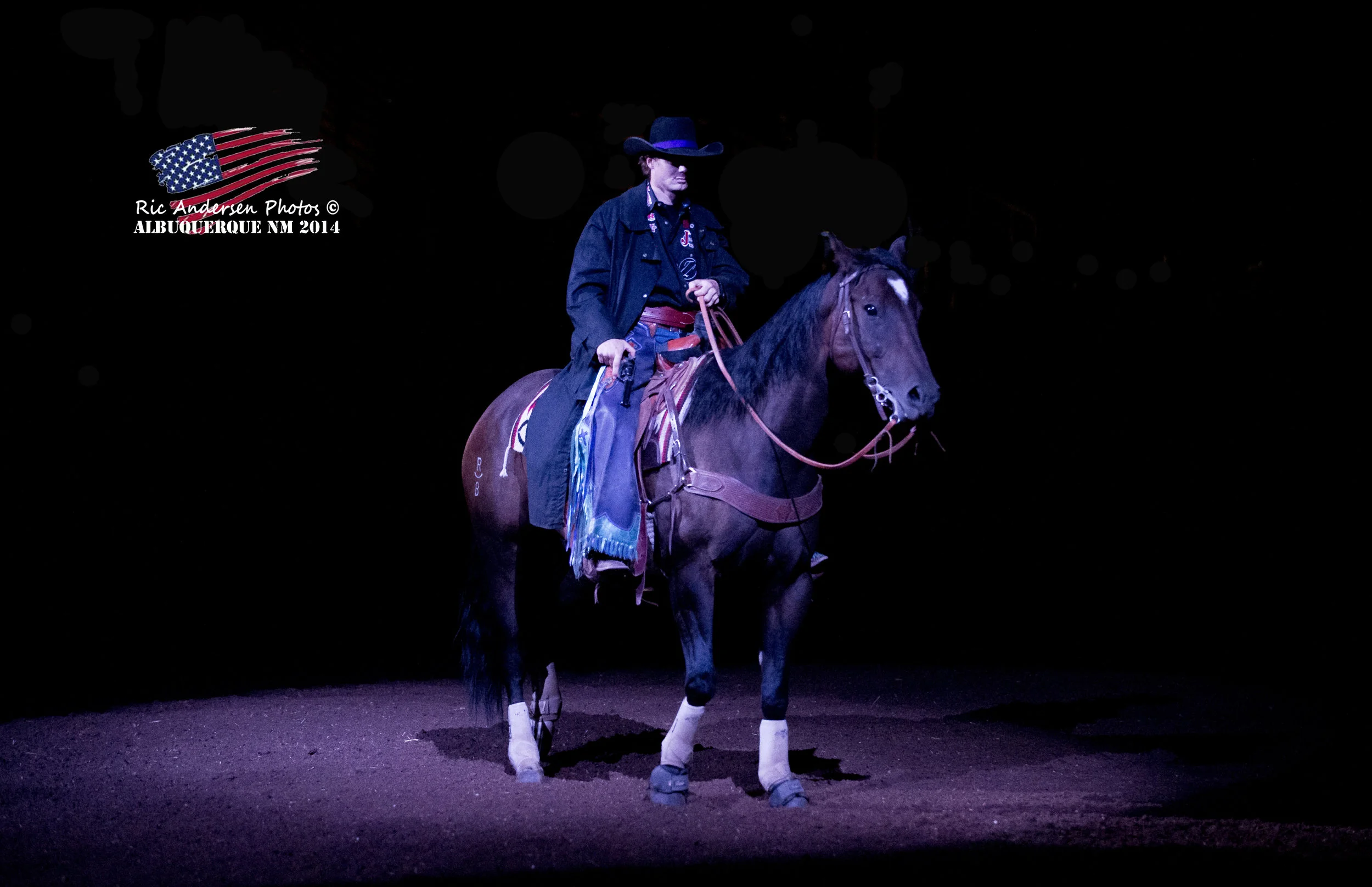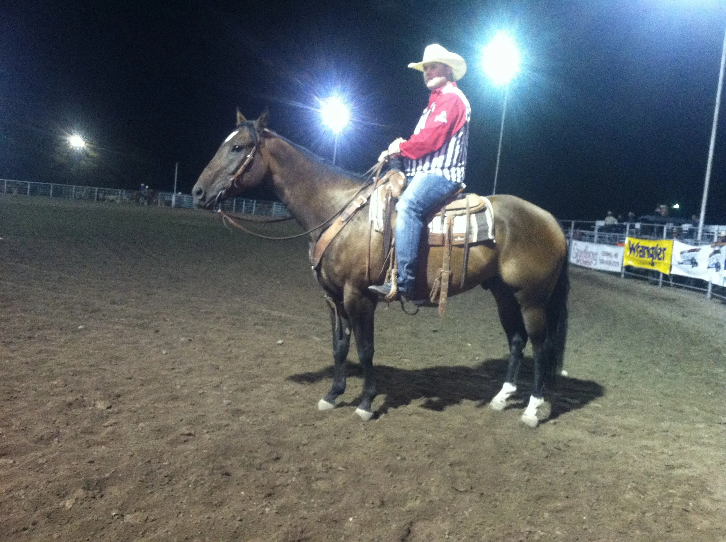 This fun guy had never seen the lights of town until we hauled him to his first rodeo, and since then quickly become a full time member of Randy's rodeo string, roping and dragging bulls, sorting horses and cattle, and picking up broncs. He pulls hard and is strong at the horn and has top end speed. Drummer is a favorite one for the judges to use to flag the roping events simply because of his quiet nature, good handle, and smooth as silk trot. He has been used in countless opening acts from music blasting and intense light displays flying around while he's packing a gun-shooting rider, to dark houses with the only spotlight on him. He is 100% personality and a total ham to be around. He loves attention, loves people, and is always making sure you are paying attention to him. I'm not sure we've had a horse that oozes as much personality as this one!