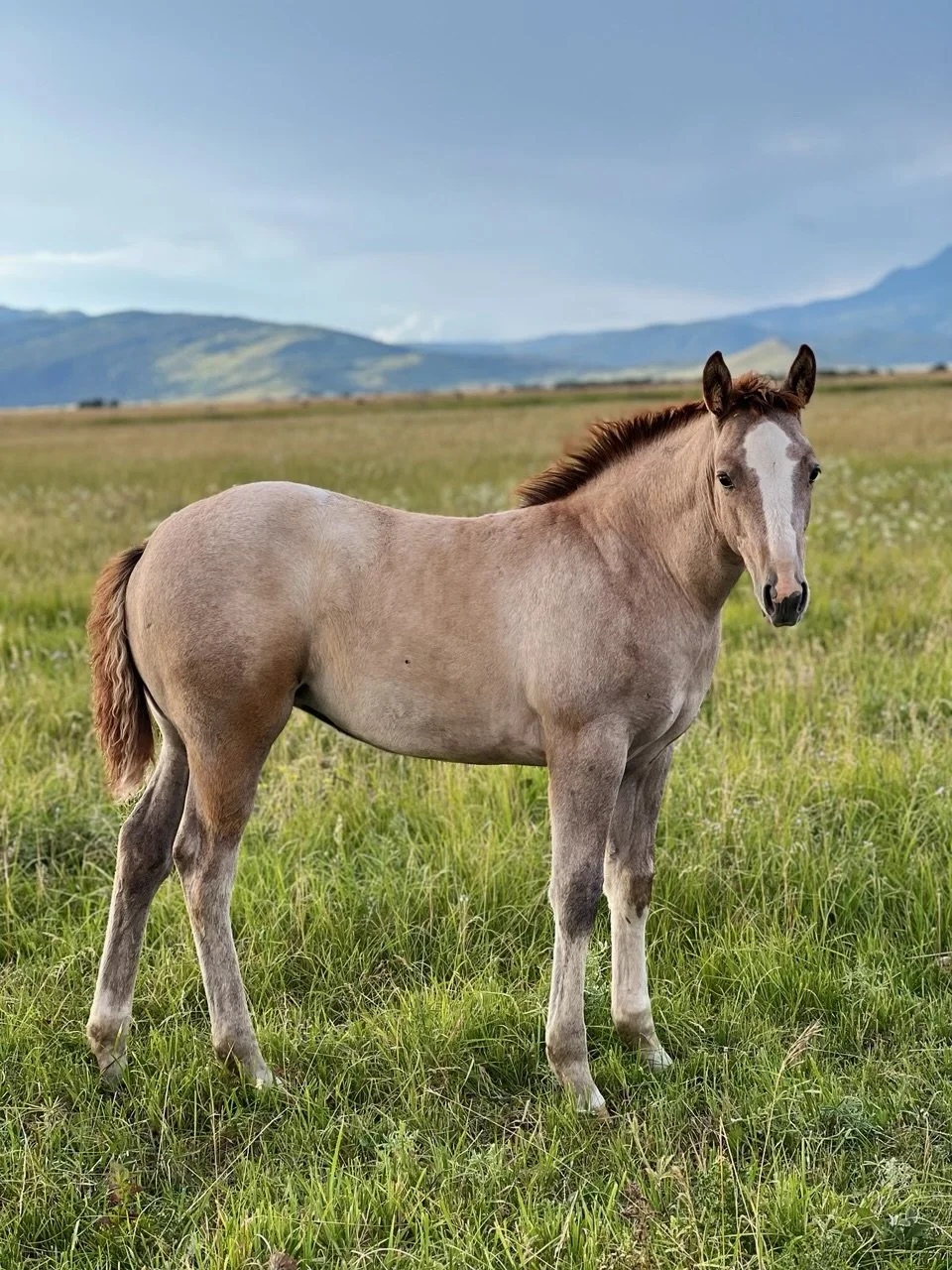 Big, flashy gray filly born 5/11/23. She is going to be strong and athletic and have the ability to do anything you need.